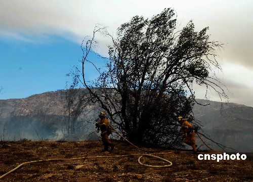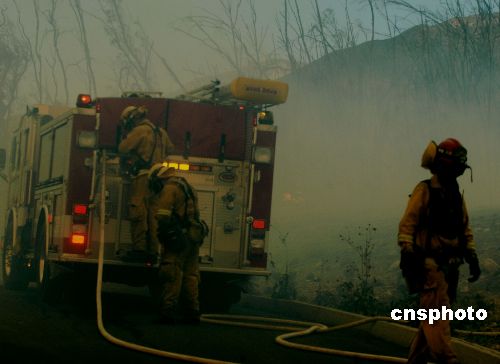 十月二十六日,美國加州大火第六天,消防員基本撲滅洛杉磯十四處山火,準備轉戰依然燃燒的圣地牙哥和橙縣,那里災情依然嚴峻。中新社發 賈國榮 攝