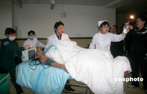 醫(yī)護人員將一名受重傷的船員送往急救室。