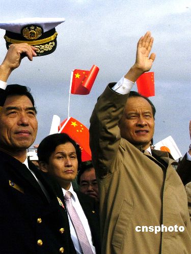 12月1日上午,中國海軍“深圳”號導彈驅逐艦圓滿完成訪日任務,于當地時間十點啟程歸國。中國駐日大使崔天凱、日本海上自衛隊軍官在碼頭向離港的“深圳”號艦上官兵揮手致意。中新社發 朱沿華 攝