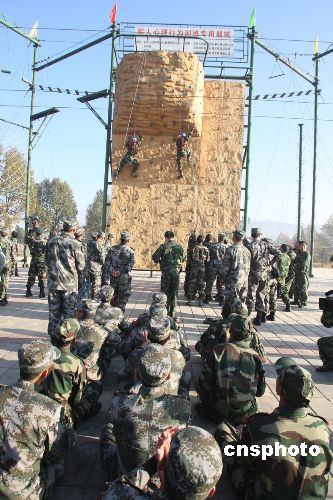 圖為中印士兵在進行攀巖訓練。