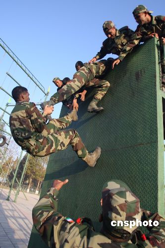 圖為印度士兵在攀爬障礙。