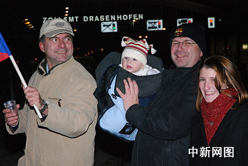 一個家住布爾諾市的捷克家庭特意驅車60公里在12月20日午夜來到捷奧邊境奧地利一側德拉申霍芬海關,在零下5度的嚴寒中暢飲燙熱的紅葡萄酒,慶祝取消邊境檢查。
