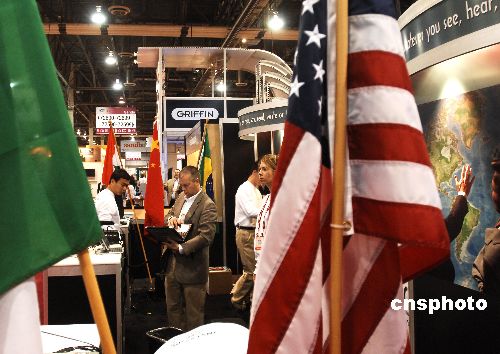 中美合資企業在展場插起兩國國旗