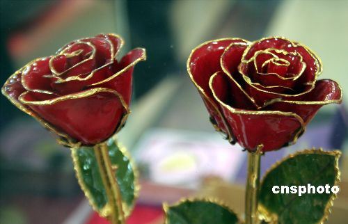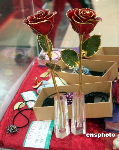 2008年2月13日,“情人節”前夕,遼寧省沈陽市中街一商廈售價521元的金玫瑰花面市。中新社發 劉寶成 攝
