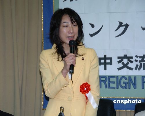 菊田真紀子在東京舉行的第三屆日本人漢語征文比賽頒獎典禮上致詞。中新社發 段躍中 攝
