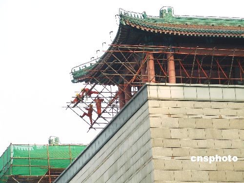 4月9日,北京西站搭起綠網準備進行環境“美容”,北京西站將以全新面貌接待中外游客迎接奧運會的到來。此次環境整治工程涉及景觀照明、外墻清洗、古建油飾等項目。作者: 追影