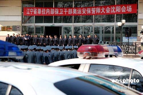 2008年4月11日,遼寧省公安廳內?傟犜谏蜿栵w機制造公司博覽園召開“奧運安!笔膸煷髸3.3萬公安內保人員參加大會,他們鄭重承諾:甘于奉獻,誓死保衛奧運。作者: 趙敬東