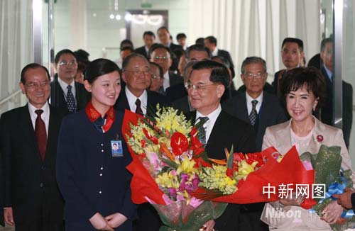 中國國民黨榮譽主席連戰一行28日下午4時許抵達北京首都國際機場,展開訪問大陸行程。中共中央臺辦、國務院臺辦主任陳云林,常務副主任鄭立中,海峽兩岸關系協會常務副會長李炳才,中共北京市委常委、北京市常務副市長吉林等到機場迎接。廖文靜 攝