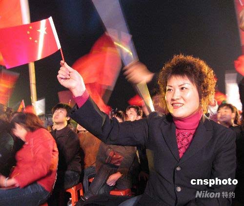 圖:秦皇島民眾山海關前歡慶奧運倒計時一百天 (3)