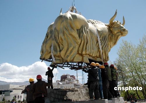 圖:拉薩市標銅雕“牦牛”搬家(2)