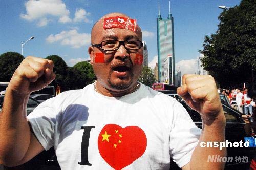 圖為深圳民眾激情迎奧運(yùn)。 中新社發(fā) 陳文 攝