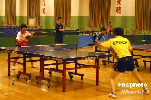 五月二十七日,四川省乒乓球運(yùn)動員在河南鄭州進(jìn)行緊張的訓(xùn)練。連日來,為避免地震的影響,四川省包括游泳、射擊、乒乓球、網(wǎng)球、跆拳道等六支運(yùn)動隊(duì)九十多名運(yùn)動員轉(zhuǎn)移到河南鄭州進(jìn)行訓(xùn)練,以全力備戰(zhàn)北京奧運(yùn)會和明年舉行的全運(yùn)會。 中新社發(fā) 史寶銀 攝
