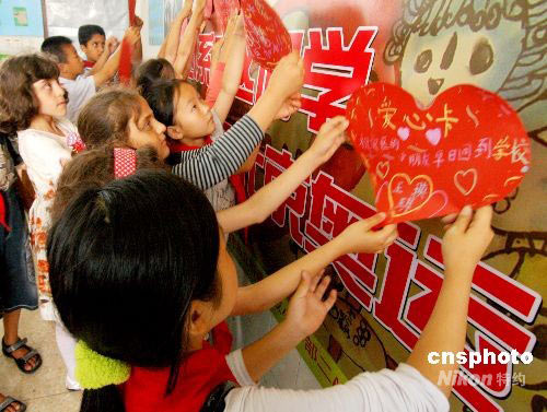 圖:義烏中外學生"心系災區學生 心向北京奧運"(2)