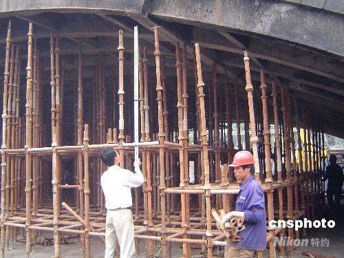因小商品攤位發生火災導致南京長江大橋南引橋第一橋孔受損嚴重,有關方面正組織力量抓緊搶修加固,工程完成需時二個多月。中新社發 王國安 攝