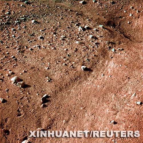 這是5月25日由美國“鳳凰”號火星著陸探測器拍攝的第一批火星北極附近的彩色圖片其中一張。 新華社/路透