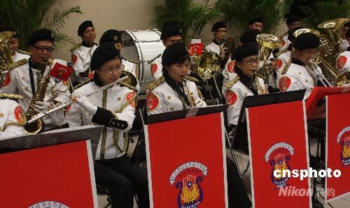 臺(tái)灣警政署十三日舉辦慶祝警察節(jié)活動(dòng),臺(tái)北縣警察樂隊(duì)演奏《感恩的心》,表達(dá)對(duì)親人、市民的關(guān)懷。中新社發(fā) 耿軍 攝