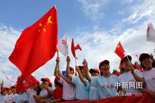 雖然大同站的火炬傳遞路線較短,線路周邊左靠河流右依山頭,無法容納太多的群眾,但在傳遞線路兩旁還是有為數不少的民眾,現場為奧運加油喝彩。張雷杰攝