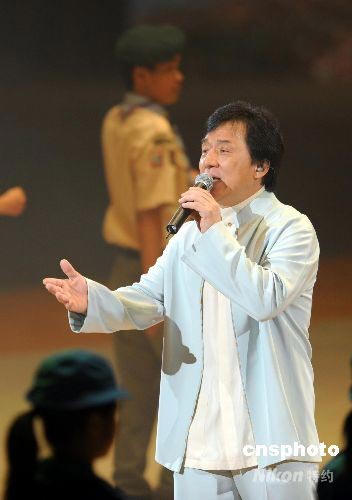 著名影星成龍在慶香港回歸十一周年文藝匯演上高唱“真心英雄”。中新社發 洪少葵 攝