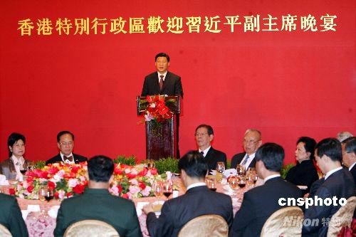 七月七日晚,中國國家副主席習近平出席香港特區政府歡迎晚宴,并發表講話。中新社發 武仲林 攝