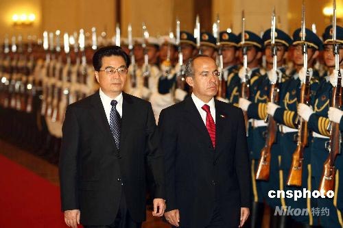 圖:胡錦濤歡迎墨西哥總統卡爾德龍訪華