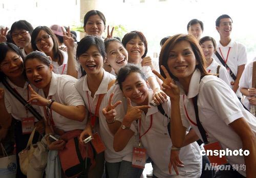 7月11日,臺灣學生在上海興高采烈地迎接夏令營開營。當日,“龍脈相傳緣聚上海——臺胞青年夏令營”在上海開營,來自臺灣政治大學、成功大學、海洋大學、佛光人文學院的同學,以及在滬的臺生、臺籍青年等百余人參加。中新社發 潘索菲 攝