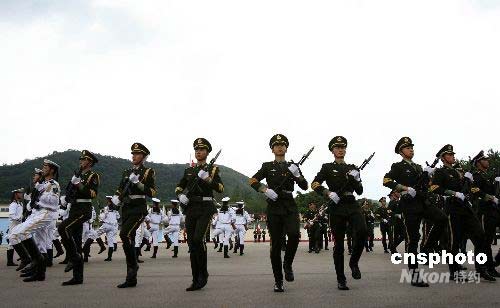 圖為駐港部隊槍械團體操表演。中新社發 張勤 攝
