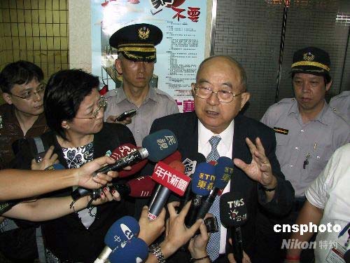 陳水扁曾公開指稱雷學明等人涉嫌在“拉法葉艦軍購案”中收受巨額回扣,雷學明等5人因此控告其誹謗。庭審后,雷學明(右)在其女雷倩(左)陪同下走出法庭,接受媒體訪問。中新社發 徐長安 攝
