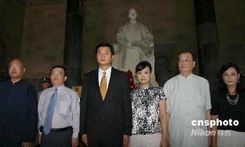 臺北縣長周錫瑋率臺北縣南京參訪團一行十人拜謁南京中山陵,在孫中山像前合影。中新社發(fā) 朱曉穎 攝