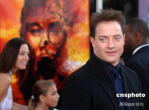 環球影業七月二十七日在好萊塢舉行《木乃伊3:龍帝之墓》首映式。影片男主角扮演者布蘭登·弗雷澤(Brendan Fraser) 出席首映式。中新社發 張煒 攝