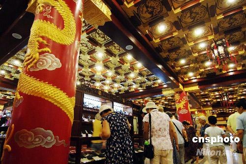 在北京奧運即將開幕之際,有著近500年歷史的大柵欄商業街完成近年來最大規模的改造,重新正式開街迎接四方來客。圖為重新裝飾的店鋪富麗堂皇。 中新社發 王東明 攝