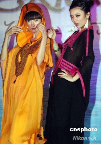 8月10日,第29屆奧運(yùn)會(huì)在北京舉行之際,“突尼斯旅游文化周”在北京舉行,來(lái)自“突尼斯的藝術(shù)家、音樂(lè)家、舞蹈家、烹飪大師、商業(yè)代表以及政府代表組成的代表團(tuán),以音樂(lè)節(jié)、美食節(jié)、商務(wù)研討會(huì)等多種形式,為中國(guó)及各國(guó)各界的賓客呈現(xiàn)一個(gè)全方位、全視角、多層次、豐富多彩的突尼斯新形象。圖為模特展示突尼斯時(shí)裝設(shè)計(jì)師創(chuàng)作的服飾作品。中新社發(fā) 錢興強(qiáng) 攝