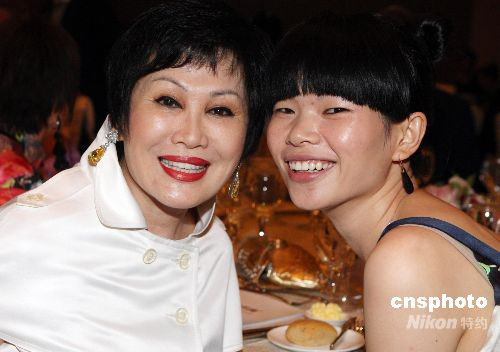 圖為美籍華人靳羽西與中國(guó)模特呂燕亮相北京突尼斯旅游文化周。 中新社發(fā) 錢(qián)興強(qiáng) 攝