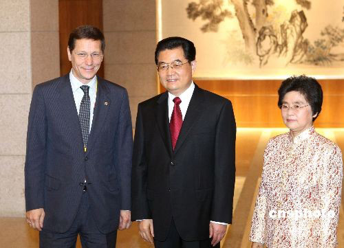 胡錦濤夫婦歡迎出席奧運閉幕式的俄羅斯副總理茹科夫