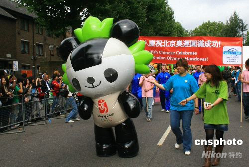 當(dāng)?shù)貢r間25日,歐洲最大規(guī)模的街頭文化藝術(shù)節(jié)——一年一度的英國諾丁山狂歡節(jié)在倫敦舉行。今年的狂歡節(jié)上,當(dāng)?shù)厝A人團(tuán)體的盛裝隊伍打出“英國華人慶祝北京奧運(yùn)圓滿成功”的橫幅,在福娃的帶領(lǐng)下走在狂歡節(jié)所有隊伍的最前面。