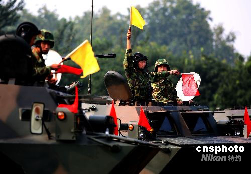 8月27日,濟南軍區(qū)某機械化步兵旅參加“勵兵--2008”演練,根據(jù)演練計劃,這支機械化步兵部隊與北京軍區(qū)一支數(shù)字化部隊舉行跨軍區(qū)聯(lián)合實兵對抗,雙方在為期一個月內(nèi)進行現(xiàn)代條件下“背靠背”的立體化攻防演練,攻擊與反殲雙方將根據(jù)作戰(zhàn)任務和“情報”實施作戰(zhàn)計劃,以磨練部隊的戰(zhàn)斗能力。中新社發(fā) 宋吉河 攝