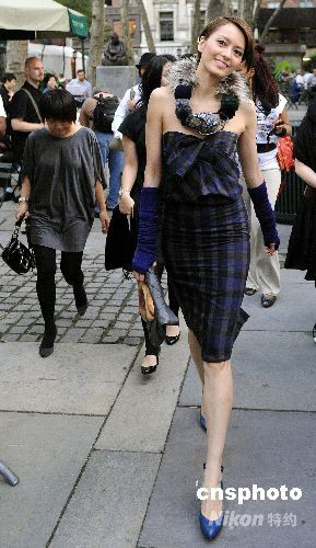 圖:香港明星梁詠琪亮相紐約時(shí)裝周(2)