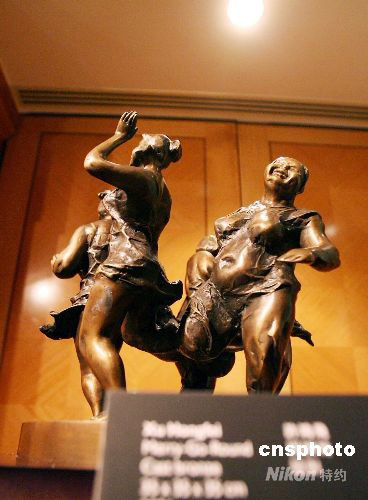九月十日,香港國際藝展公司向傳媒展示當代中國雕塑家許鴻飛的鑄銅雕塑“團團轉”。該公司主辦的 “2008香港國際古玩及藝術品博覽會”將在十月四日至七日在會展中心舉行。中新社發 洪少葵 攝