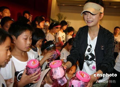 9月11日,香港華光功德會在綿陽成立“華光四川助學基金”。圖為香港華光功德會的愛心大使趙薇為綿陽地震災區學生發放助學基金。 中新社發 霍潺 攝