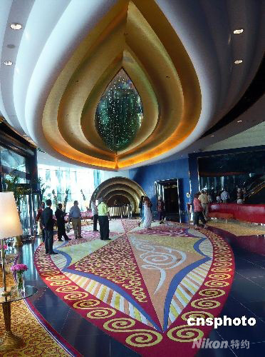 圖為帆船酒店具有阿拉伯民族傳統文化風格裝飾的豪華大廳。中新社發 錢興強 攝