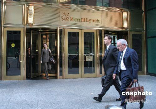 美國銀行以500億美元總價收購美國第三大投資銀行美林公司(Merrill Lynch),擁有94年歷史的美林將不復存在。但美林和美國銀行的合并,將催生一家全球銀行業巨人。圖為9月19日,路人走過位于紐約的美林總部大樓。中新社發 魏晞 攝