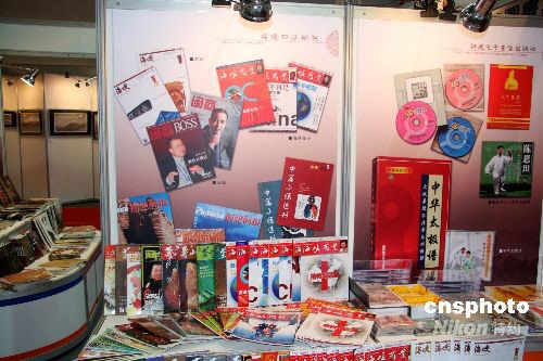 9月20日,第四屆海峽兩岸圖書交易會在臺北世貿中心三館開幕。圖為中新社福建分社主辦的《閩商》雜志在福建展區展出。中新社發 曾福志 攝