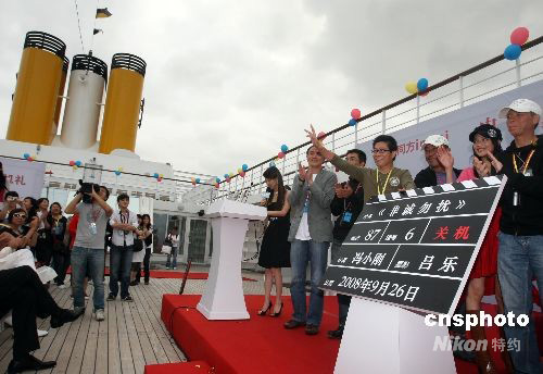 9月26日,馮小剛攜09年賀歲新片《非誠勿擾》全體主創人員搭載歌詩達豪華郵輪完成電影拍攝返滬,并在郵輪上舉行了《非誠勿擾》的關機儀式。中新社發 湯彥俊 攝