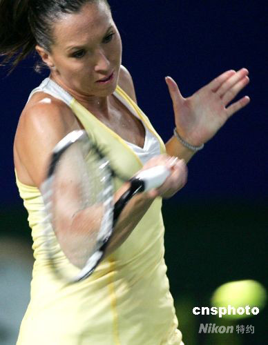 9月26日,在2008中國網球公開賽女子單打四分之一決賽中,塞爾維亞選手揚科維奇以2比0戰勝斯洛伐克選手漢圖楚娃,晉級四強。中新社發 富田 攝