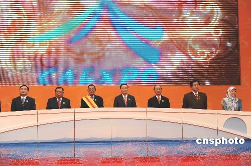 10月22日上午,第五屆中國—東盟博覽會在廣西南寧市開幕。中國國務院副總理王岐山、柬埔寨首相洪森、緬甸總理登盛、老撾副主席本揚·沃拉吉等中國和東盟政要出席了博覽會開幕儀式。中新社發 蔣雪林 攝