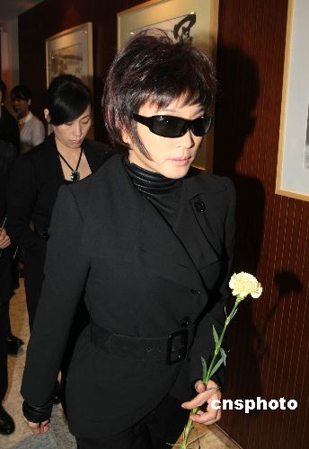 與謝晉導演合作過《最后的貴族》的中國著名女演員潘虹在追悼儀式上。中新社發 湯彥俊 攝
