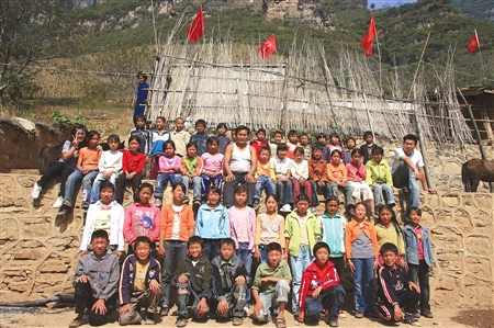 志愿者走前,拿著志愿者送來的從未使用過的彩色筆,孩子們興奮地在白布上畫畫寫字,秩序有點亂。申其軍用方言大吼了一聲,隊伍立即整齊了。“還是申老師鎮得住這些娃娃。”一旁的村民笑著說。申其軍站在包唐韜和楊菲旁,微微露出滿意的笑容:“包老師和楊老師,他們會離開這里,我心里很清楚。我希望有更多的志愿者來幫助這些孩子!