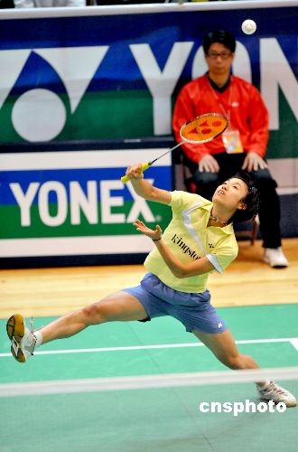 中國香港選手葉姵延在香港伊利沙伯體育館舉行的二零零八香港公開羽毛球超級賽首輪比賽中,以二比零戰勝荷蘭選手姚潔,晉級十六強。中新社發 鄧慶樂 攝