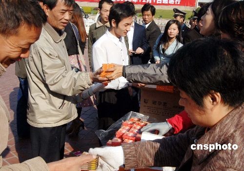 十二月一日,福建省福州市有關(guān)部門在福州聯(lián)合舉行主題為“遏制艾滋、履行承諾”的大型宣傳活動。圖為衛(wèi)生部門向民眾發(fā)放安全套。中新社發(fā) 劉可耕 攝