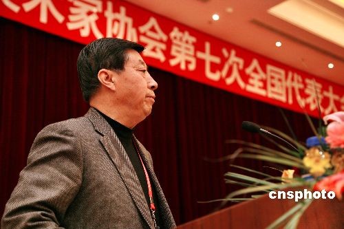 新當(dāng)選的中國美協(xié)主席劉大為在閉幕上致辭。