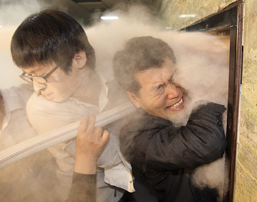 韓國議員爆沖突 使用滅火器當"武器"(3)